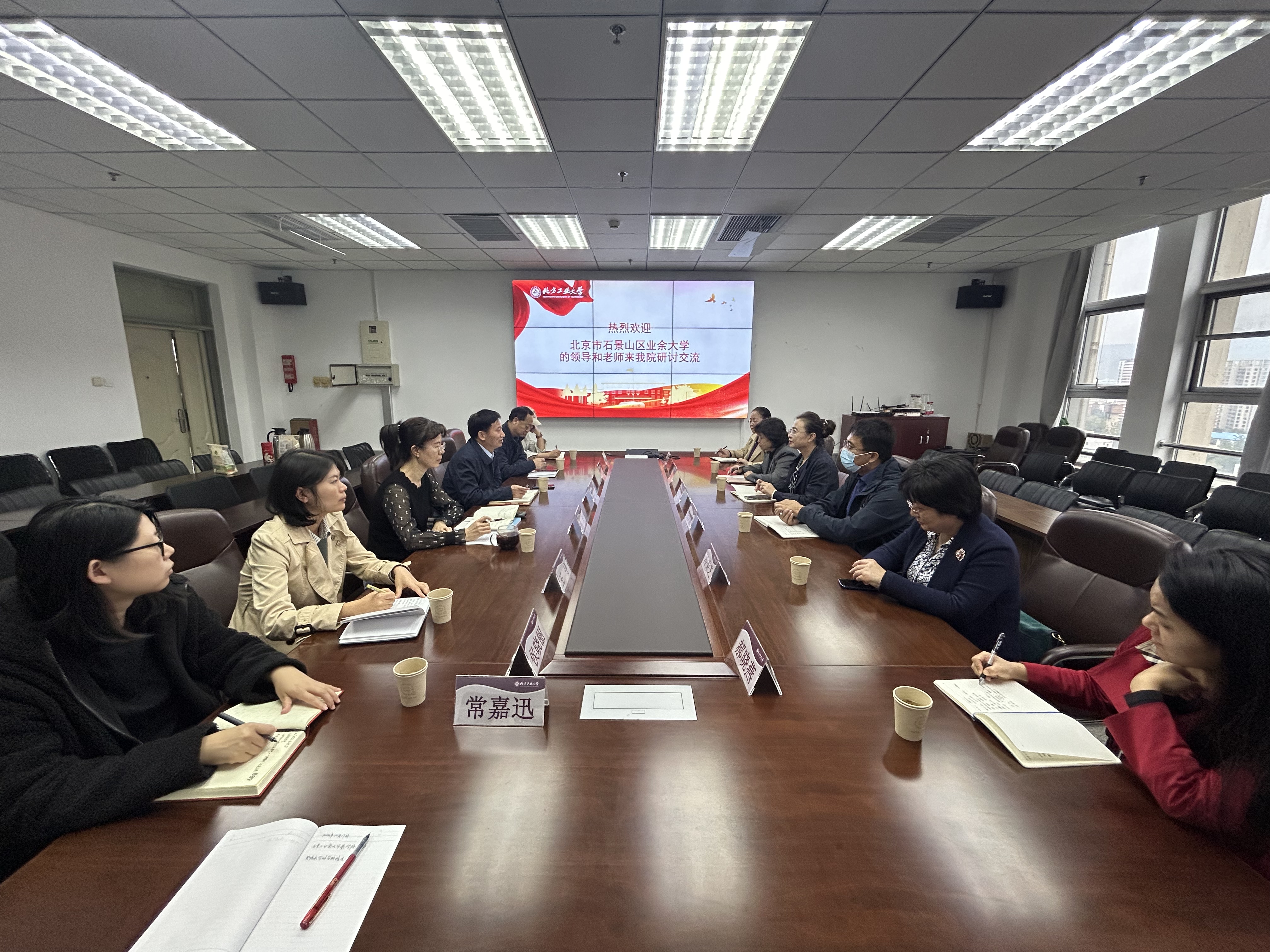 10月17日下午,石景山区业余大学副董事长刘荣等一行六人到公司来利国际旗舰厅调研交流,来利国际旗舰厅全体教职工参加了交流座谈会。